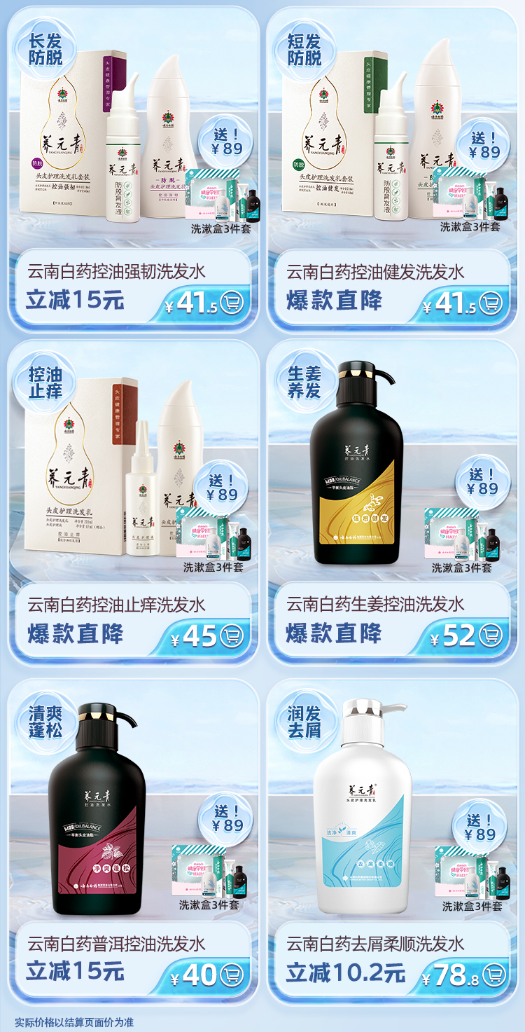 商品名称:云南白药养元青洗发水套装控油止痒蓬松210ml+65ml洗发男女旅行装