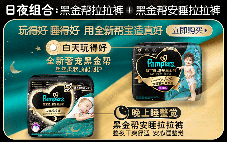 商品名称:【日夜搭配】帮宝适黑金帮拉拉裤夜用蚕丝透气纸尿裤尿不湿