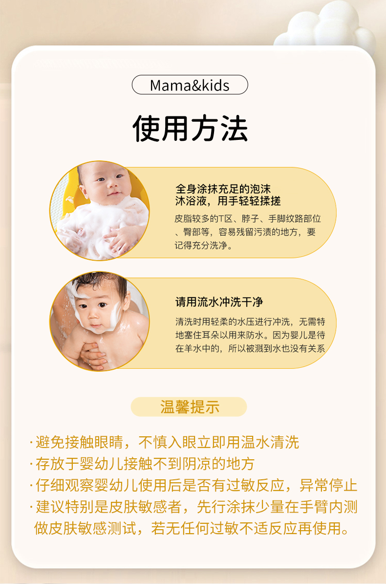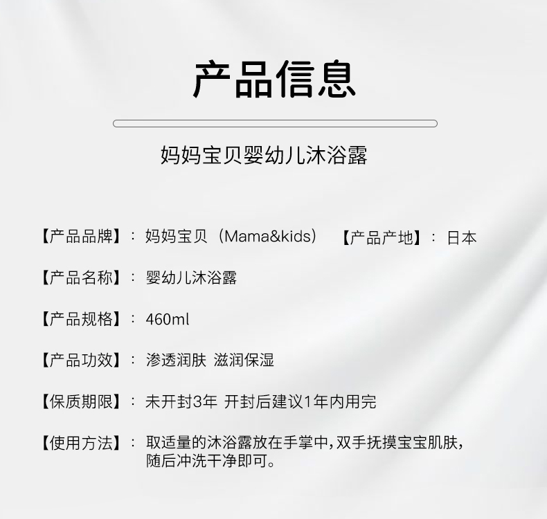 商品介绍:mama&kids幼儿沐浴露保湿洁肤液460ml
