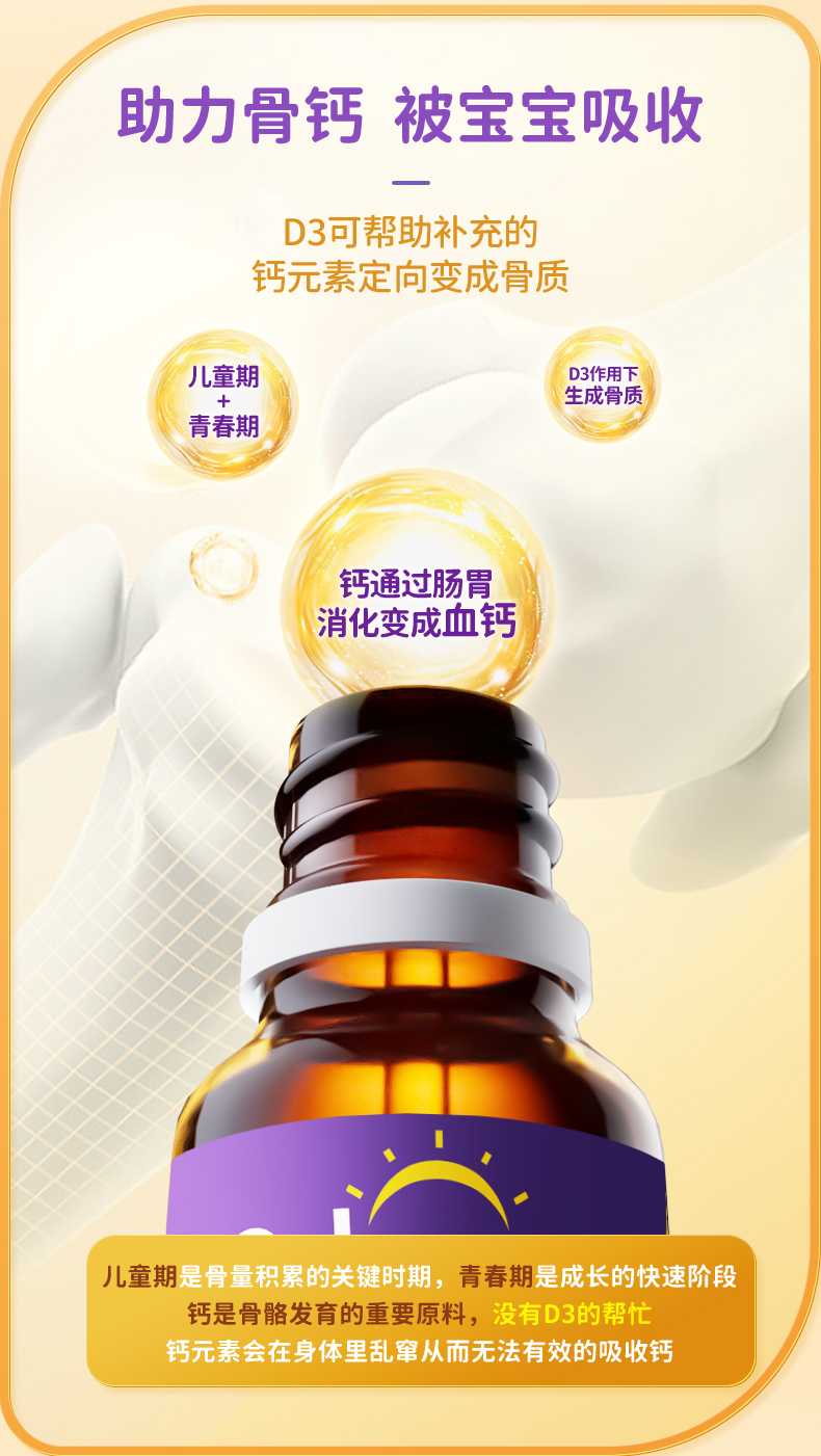 商品简介:天然无添加,增加钙吸收,补充钙质,强健身体,瓶口滴管设计,每日1滴,守护宝宝成长,让宝宝成长赢在起跑线~