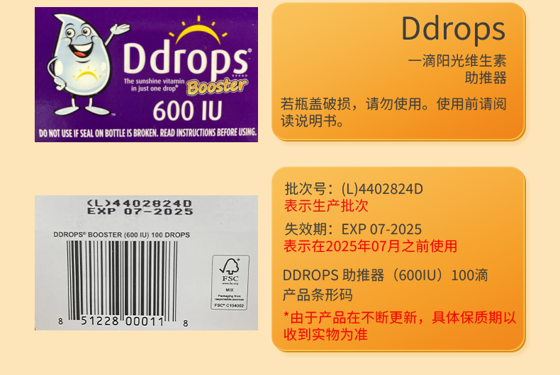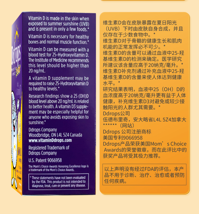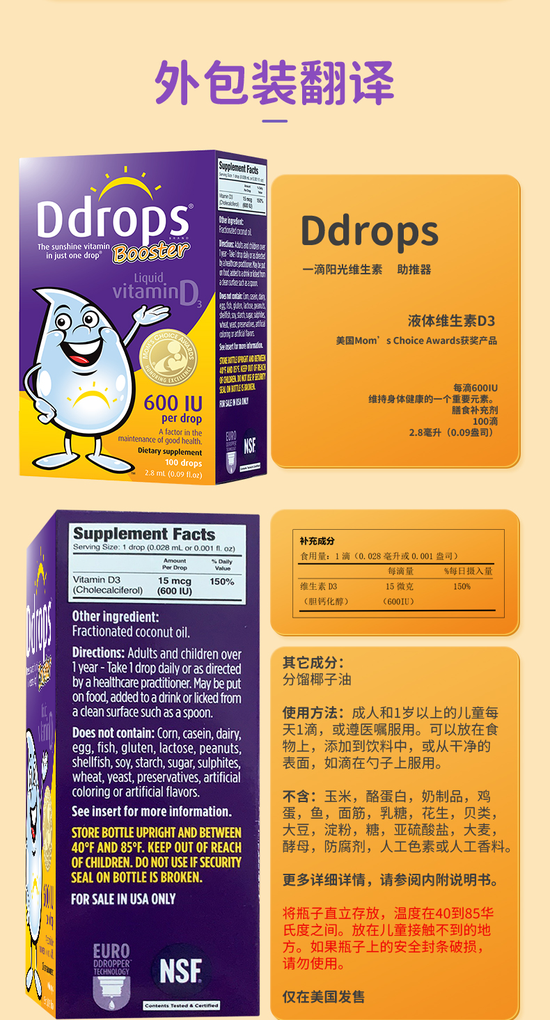 商品介绍:Ddrops滴卓思维生素VD3滴剂2.8ml*2