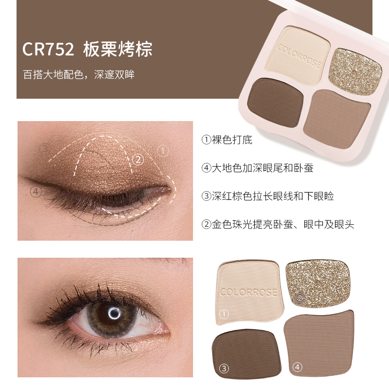商品介绍:colorrose口袋眼影盘4色眼影盘