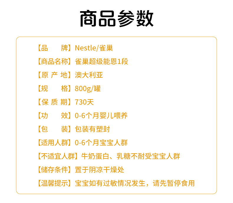 商品介绍:澳洲雀巢超级能恩1段5HMO益生菌奶粉800g