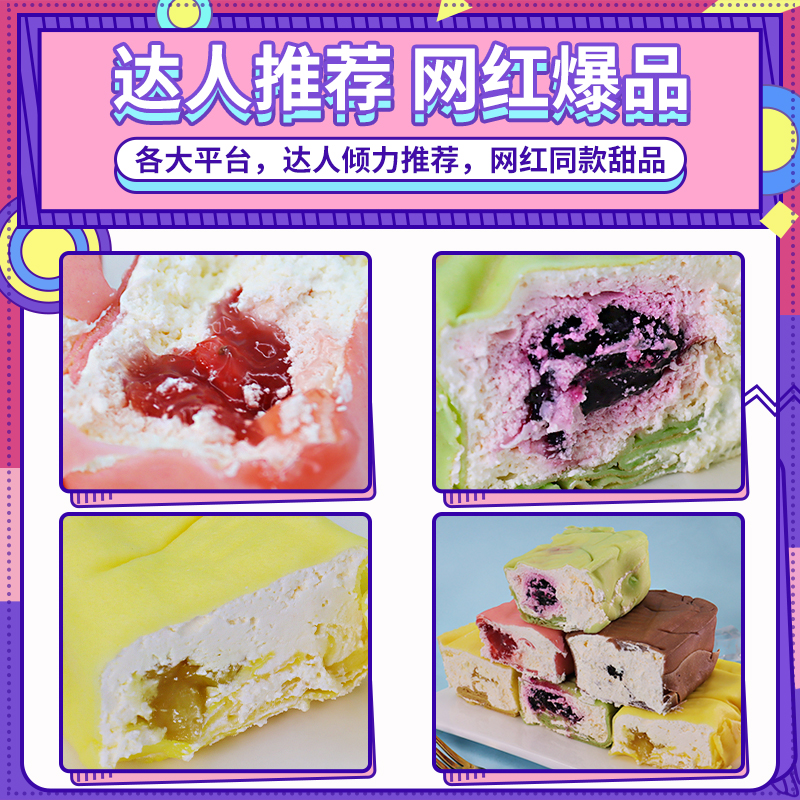 商品名称:毛巾卷蛋糕盒子网红爆浆甜品奶油小蛋糕面包奥利奥芒果草莓零食