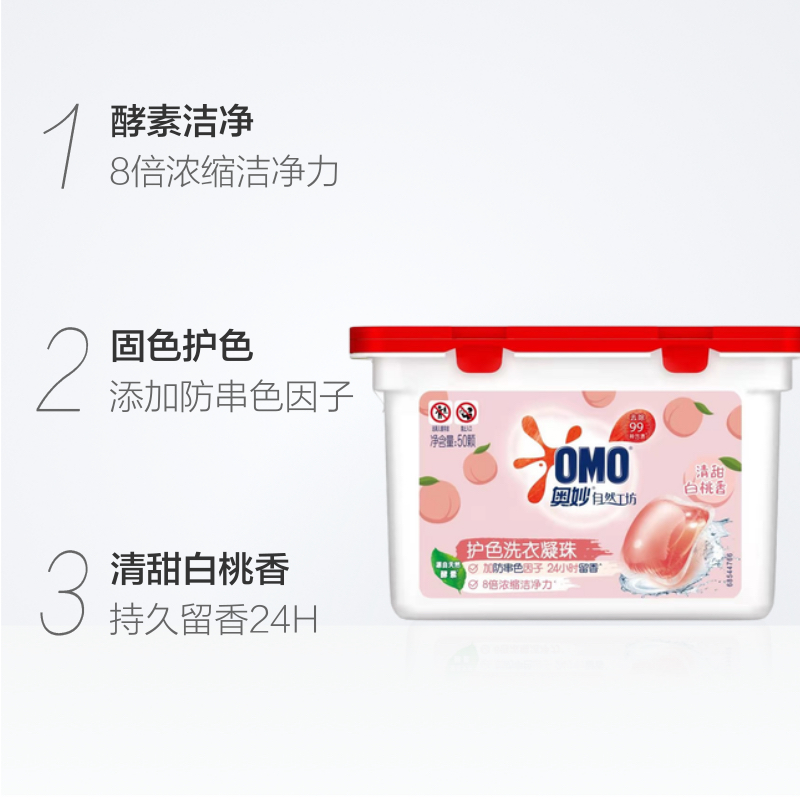 商品名称:奥妙自然工坊白桃护色洗衣凝珠400G*2持久留香抑菌除螨去渍