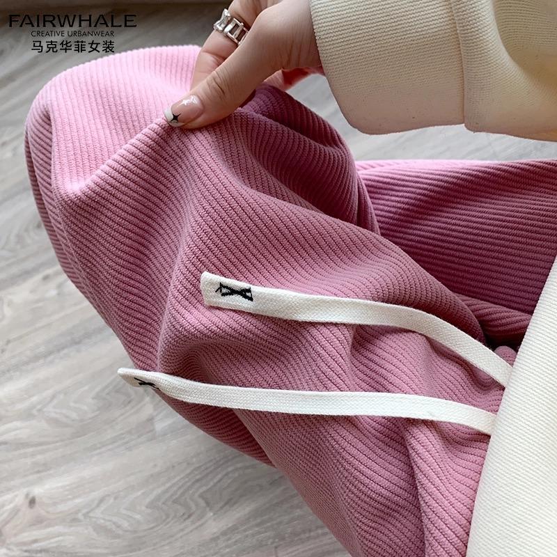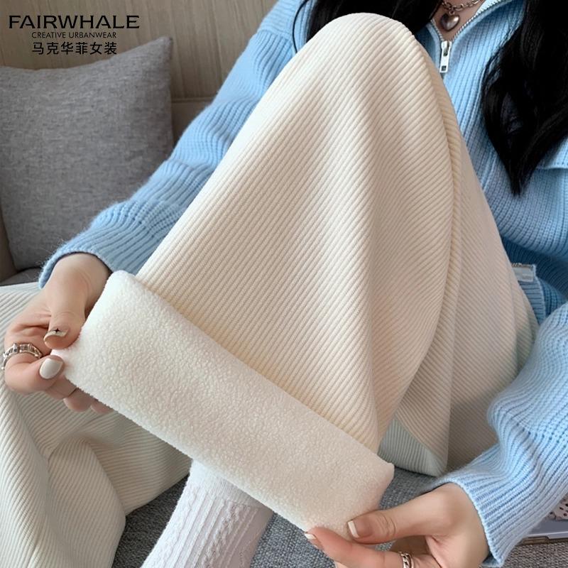 商品名称:马克华菲欧棉绒阔腿裤女秋冬新款加绒高腰宽松显瘦直筒休闲长裤子