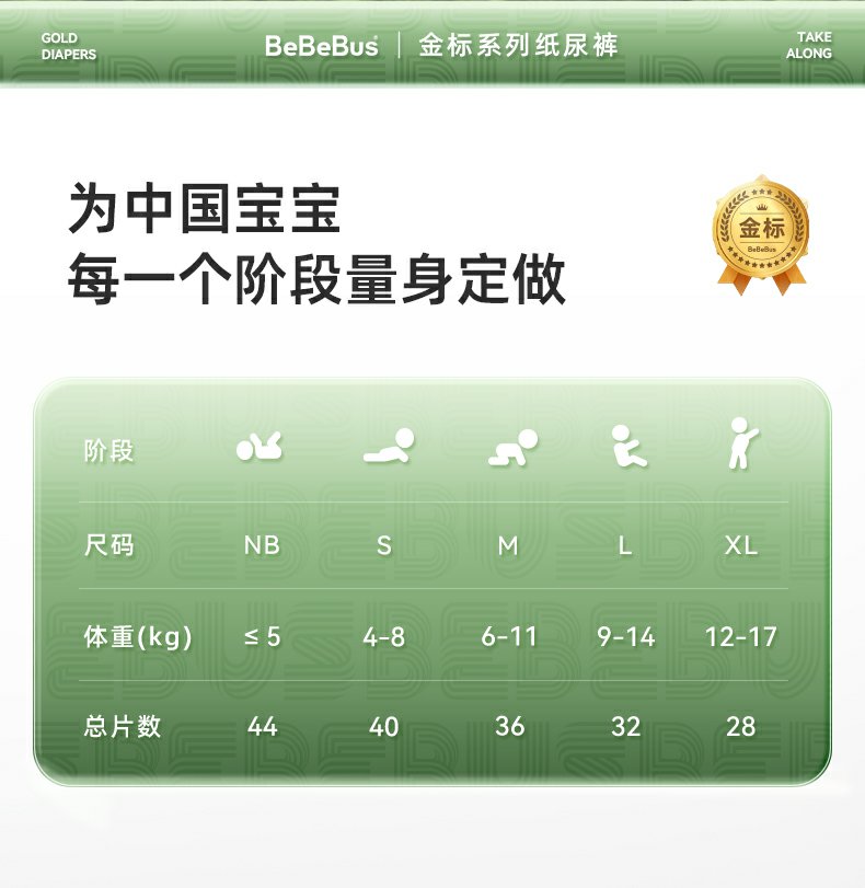 商品介绍:【公开高补!】1提装BeBeBus装仔金标纸尿裤