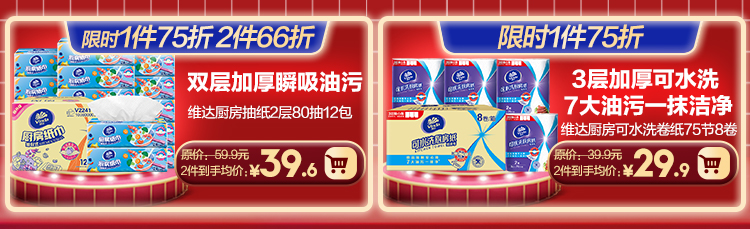商品介绍:拍2件!维达棉韧压花抽纸3层S码100抽*60包
