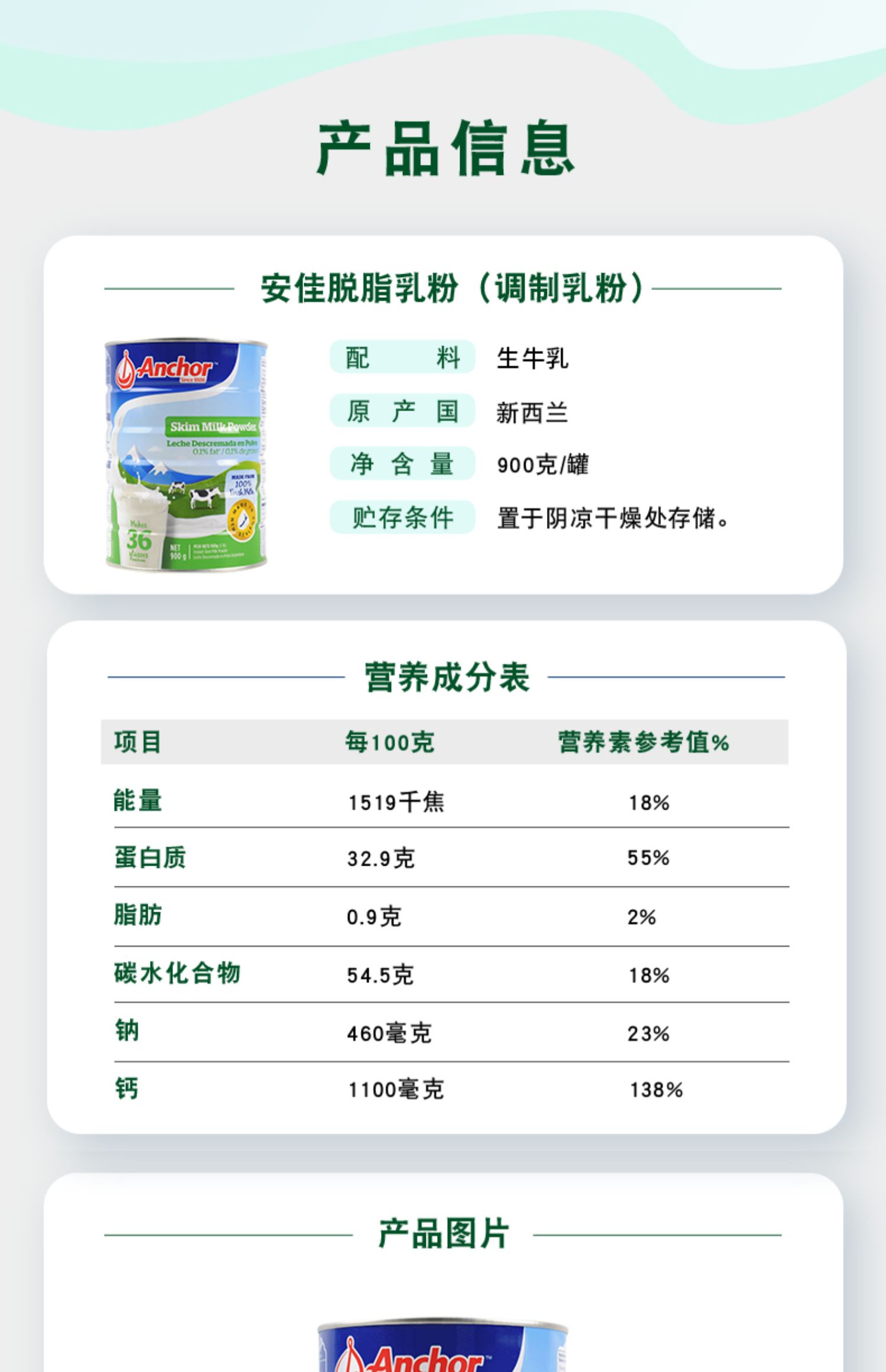 商品介绍:安佳新西兰进口成人高钙奶粉900g/罐