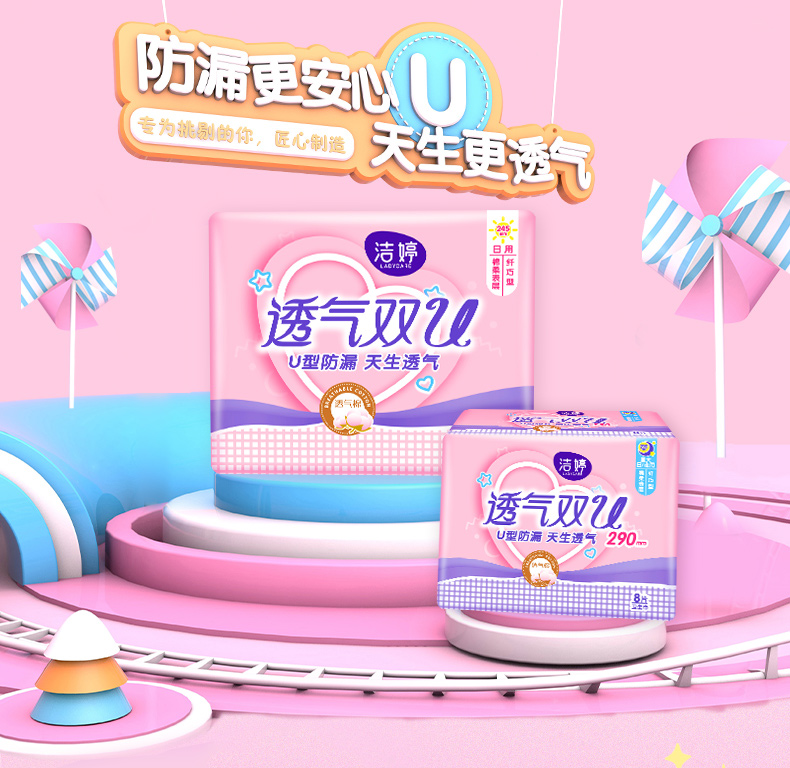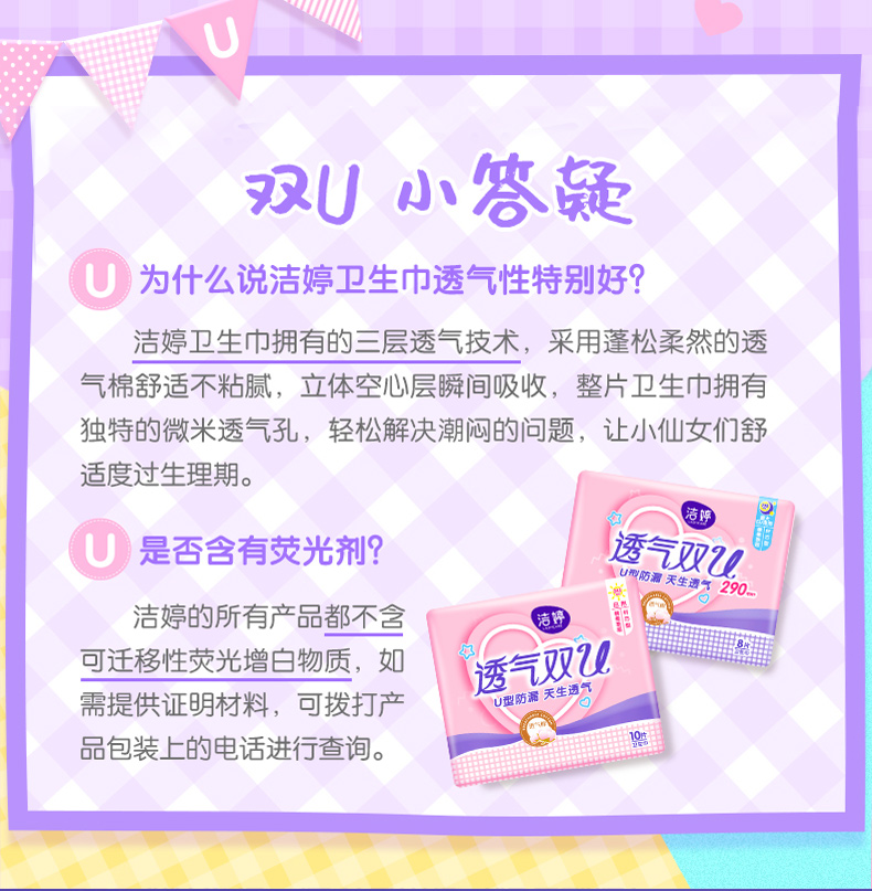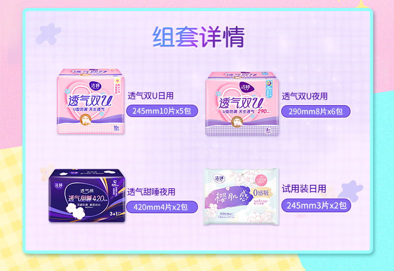 商品介绍:洁婷卫生巾透气双U日夜用组合112片