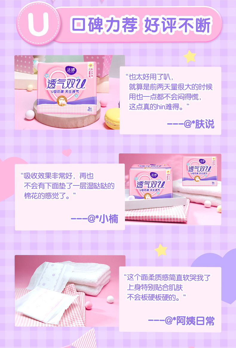 商品名称:洁婷卫生巾透气双U日夜用组合112片超薄透气防漏棉柔亲肤姨妈巾女