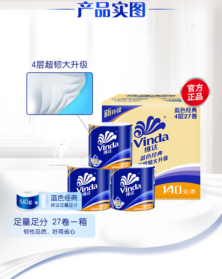 商品介绍:赵丽颖同款!维达经典有芯卷纸4层140克54卷