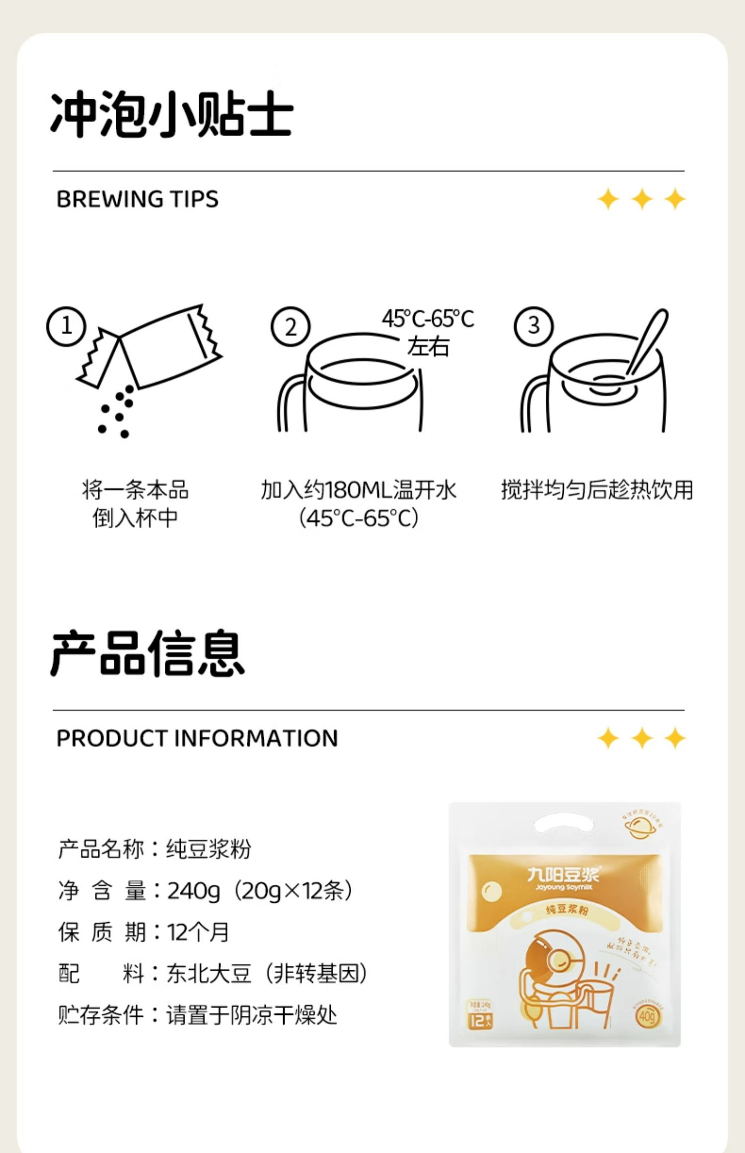 商品介绍:九阳无添加蔗糖豆浆粉27g*24条+送胖胖杯