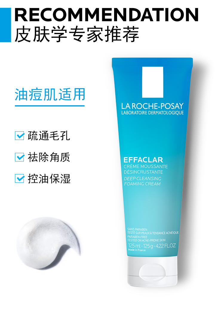 商品介绍:理肤泉油皮洁面泡沫125ml