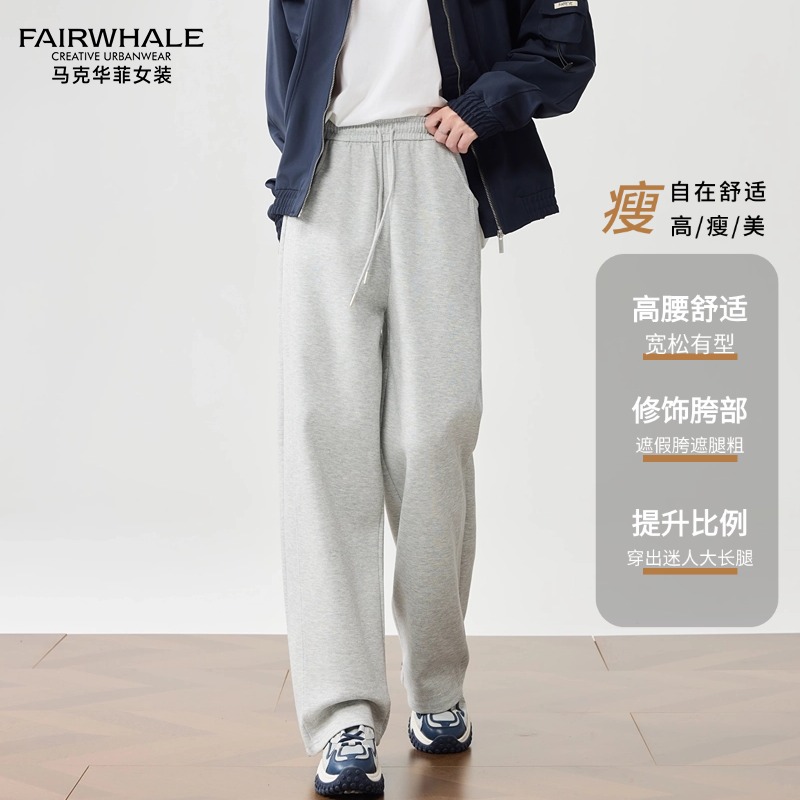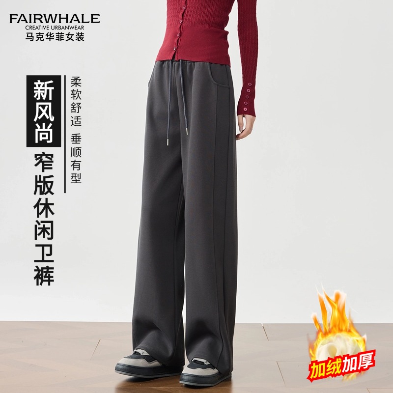 商品名称:马克华菲香蕉阔腿裤女2024秋冬新款休闲美式宽松加绒卫裤运动裤女