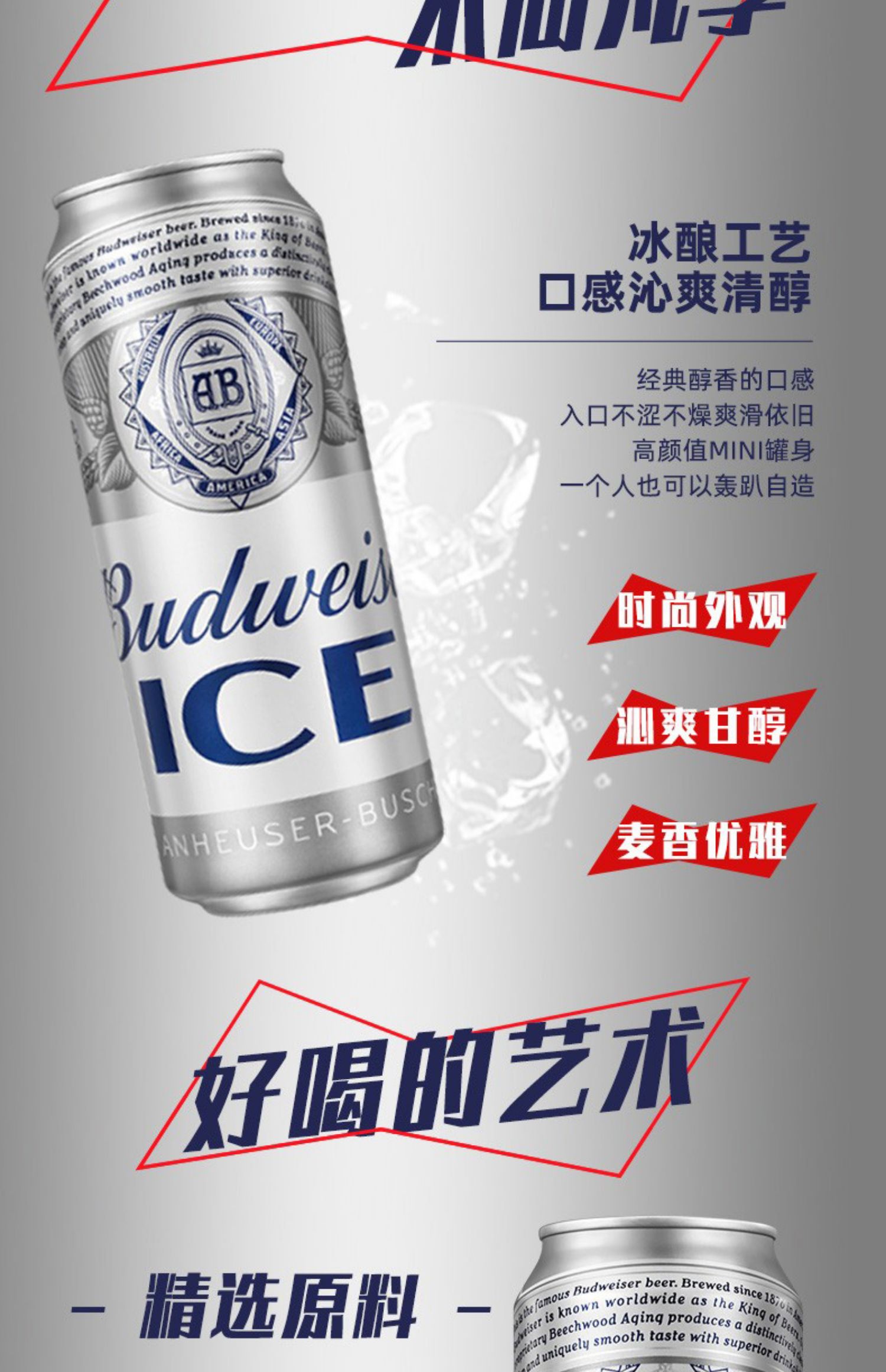 商品介绍:凑单70!百威啤酒冰啤500ml*18听
