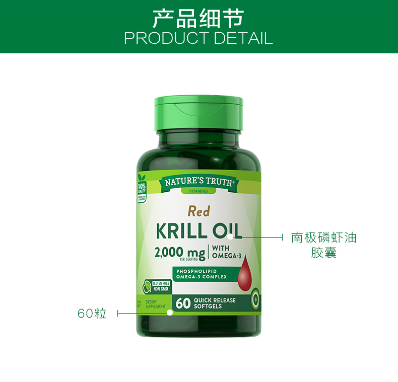 商品介绍:拍2件,共120粒自然之珍.磷虾油