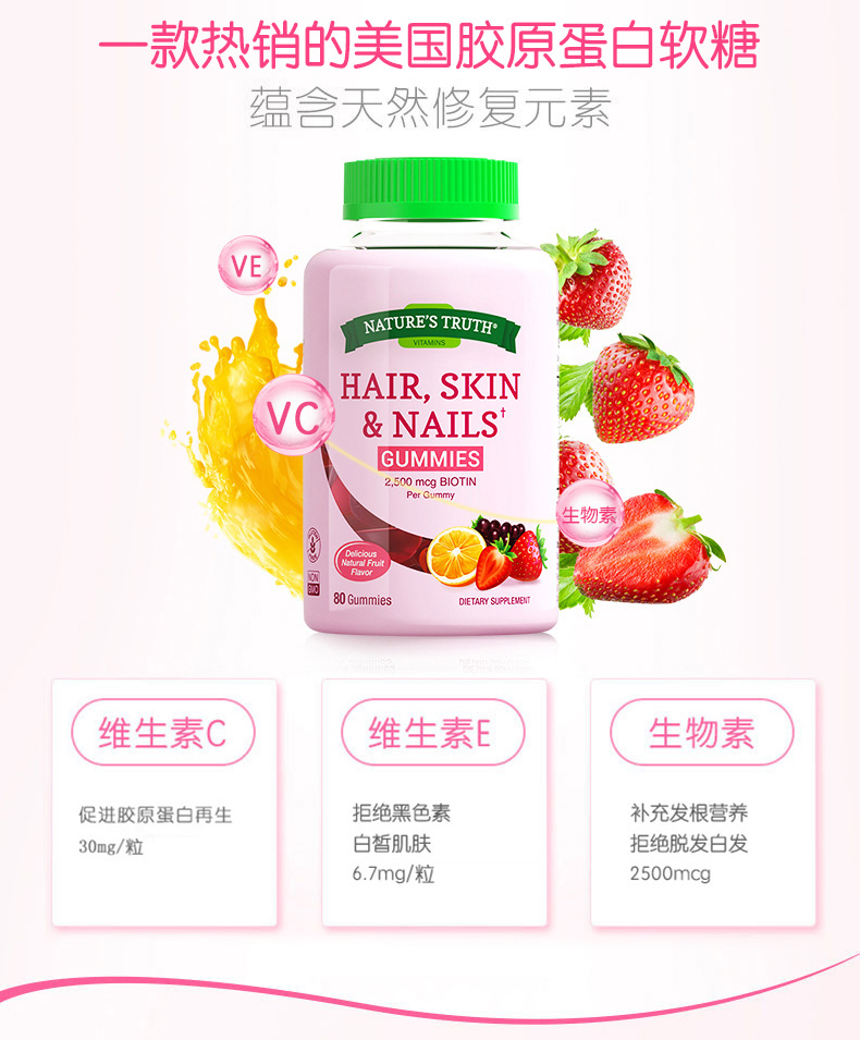 商品名称:胶原蛋白水果糖小熊软糖美白丸肽非自然之宝草莓发肤甲护发维生素