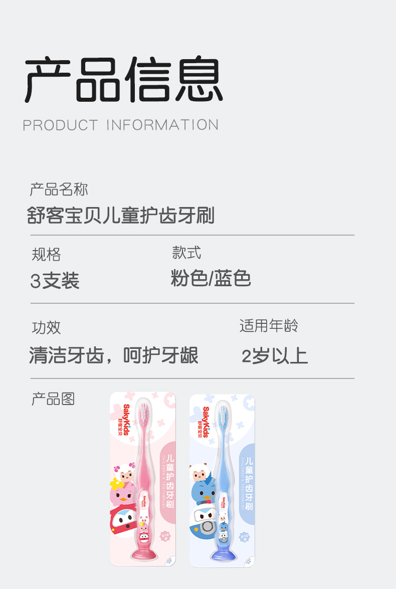 商品介绍:天猫超市!舒客儿童牙刷3支装