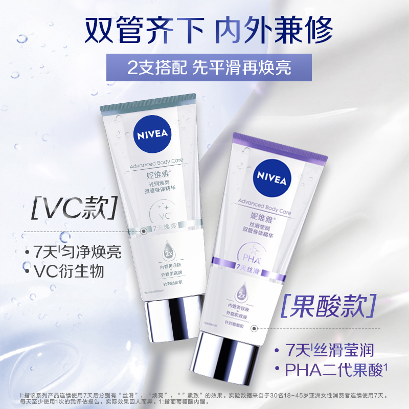 商品名称:【现货速达】妮维雅果酸双管身体精华护肤乳液秋冬滋润焕亮女套装