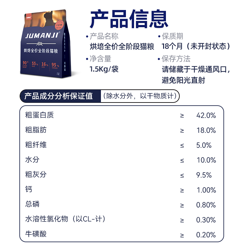 商品简介:优曼吉鲜鸡肉高蛋白1.5kg,烘焙全价乳鸽增肥发腮全年龄段通用猫粮。