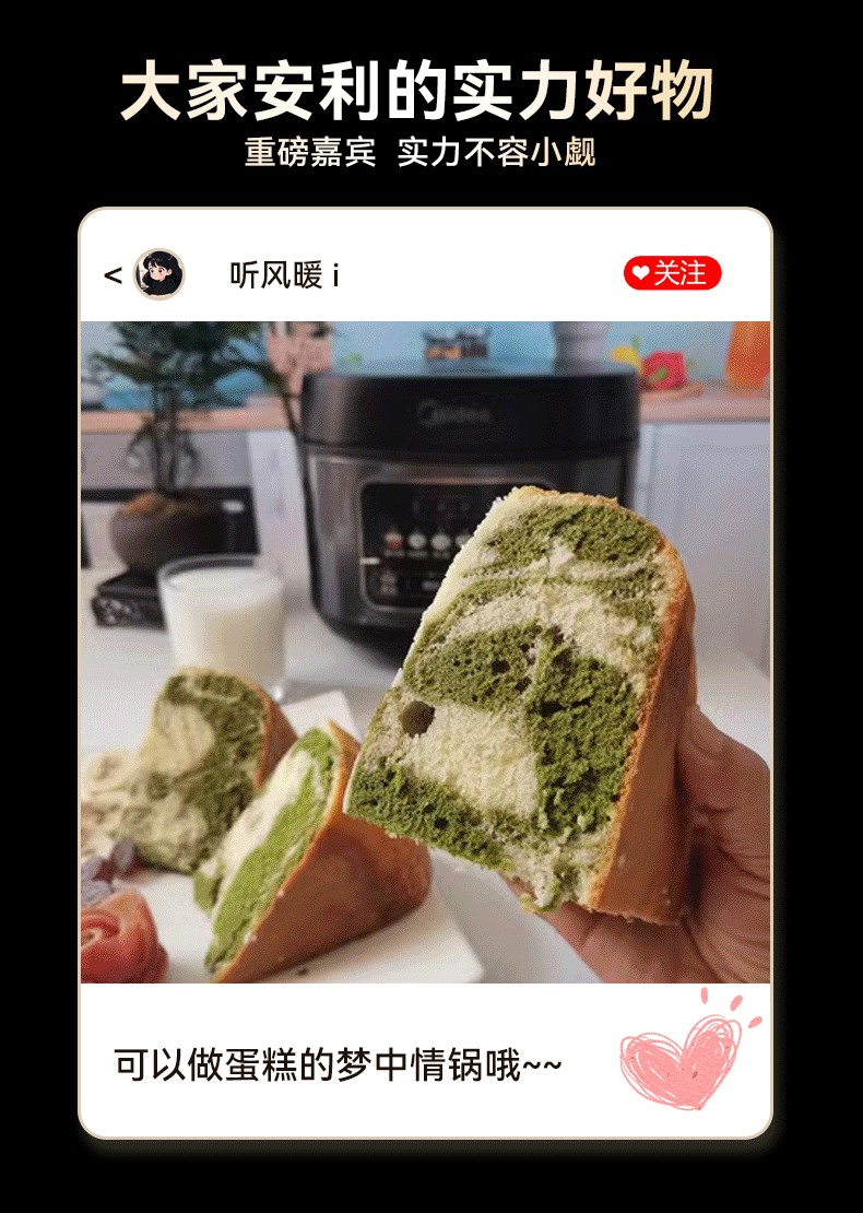 商品简介:优选精铜不糊底,微电脑智控每1°C,6段焖出香软好米饭,24小时全天预约,煮粥防溢更安心~