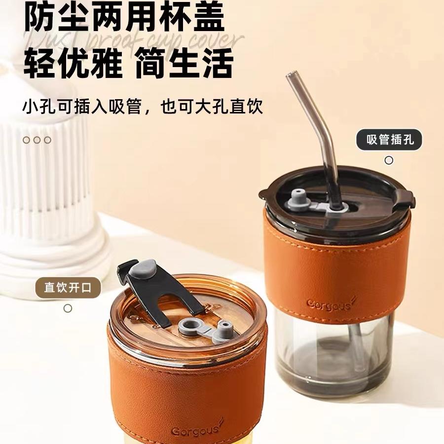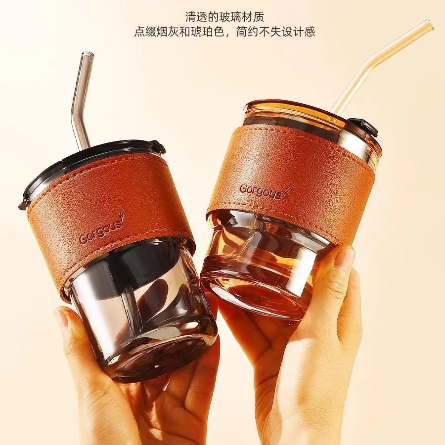 商品简介:玻璃材质安全健康,赠送杯套,吸管,450ml大容量,时尚外观,适配办公、居家、车载多场景,畅享咖啡、果汁、奶茶,品味生活每一刻!