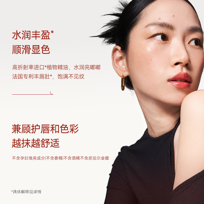 商品简介:饱满光感轻盈舒适,滋润饱满顺滑显色,兼顾护唇和色彩越抹越舒适,精油代替香精调香,精简,自然,用植物精油的能量着色每一天