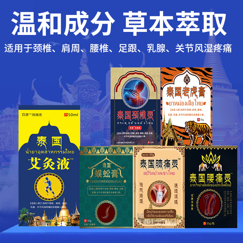 商品简介:升级款泰国膏药大合集15款!!!家中必备!!从头痛、到肩颈、再到腰腿、关节、再到脚!全身的大小毛病都可以解决!!!