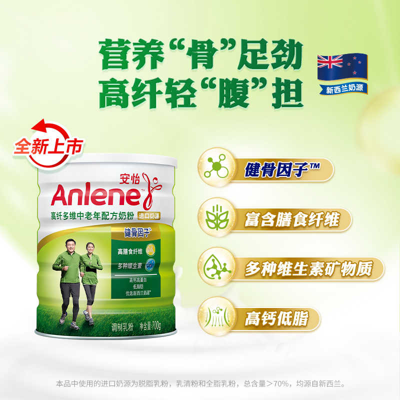 商品名称:安怡高纤多维中老年奶粉700g低脂高钙高蛋白含膳食纤维新西兰奶源