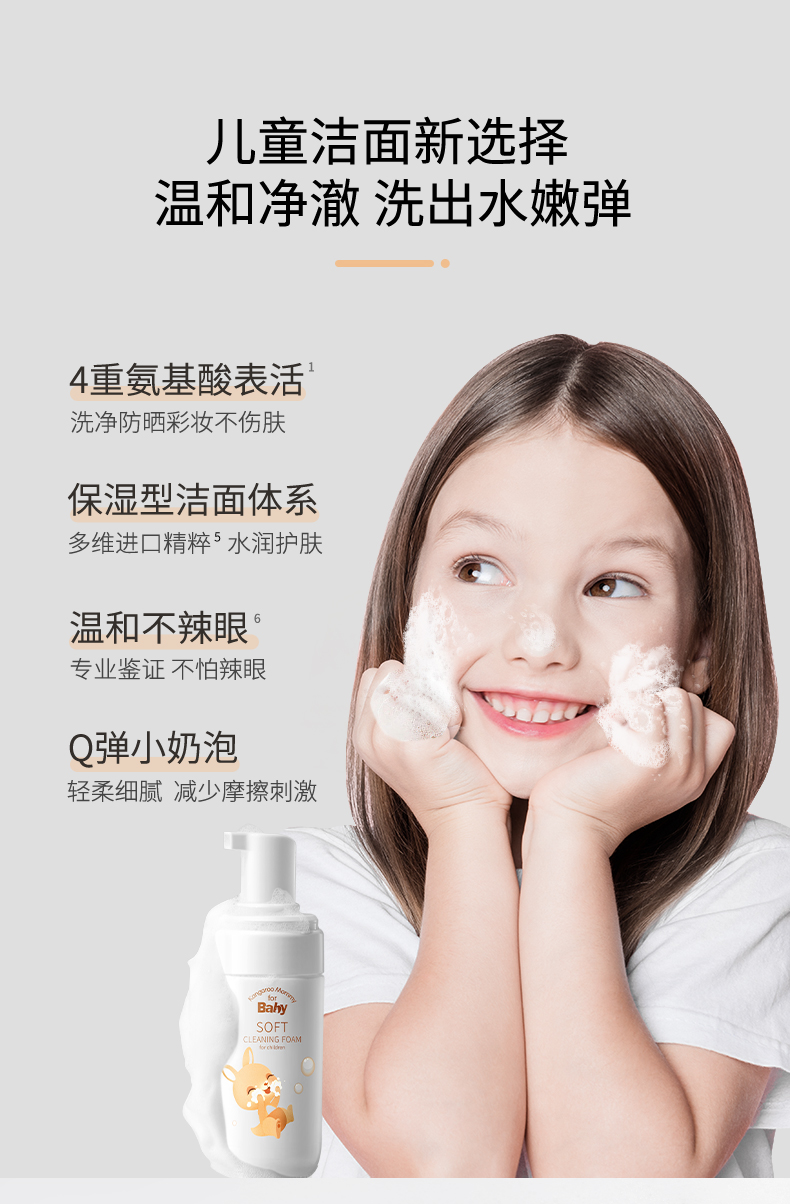 商品简介:【凑单36.9元,折12.3元/瓶】采用四重氨基酸!!温和又洁净~摇一摇挤出来的泡沫像棉花糖一样绵密!上脸超酥服的,宝宝也需要洁面的!!夏天汗液啊~灰尘啊~食物残留啊~都得清理干净嘞!一款宝宝用的温和不刺激的洗面!!太难得了~~~