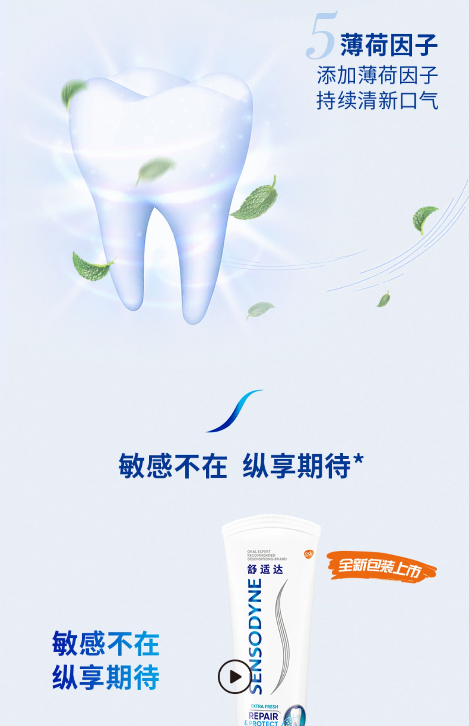 商品介绍:舒适达专业修复抗敏感薄荷牙膏100g*3支