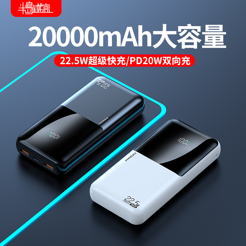 商品名称:半岛铁盒充电宝22.5W超级快充智能数显PD20W双向快充大容量2万毫安超薄小巧便携移动电源官方正品