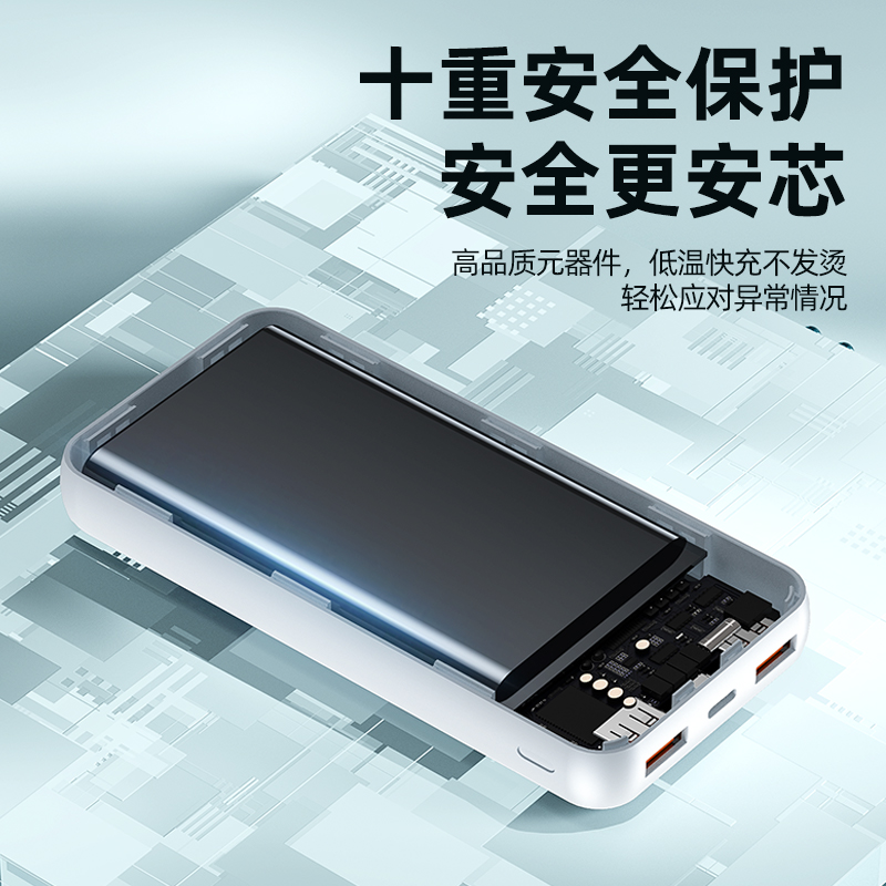 商品简介:电池容量20000毫安超大容量,22.5W极速充,三输出双输出3台手机同时可充,做工优良考究,喜欢的可入哦,出门带上它就够了,赠送运费险!!