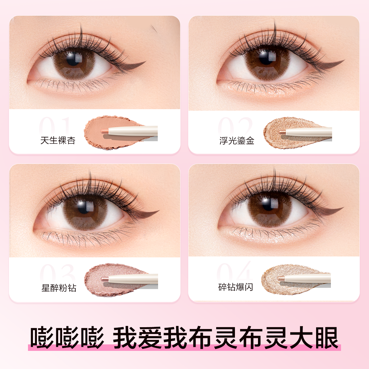 商品简介:放大双眼,立显妈生卧蚕!腮红修容卧蚕一步到位,眼线笔流畅不晕染,高显色,轻松画出完美妆容