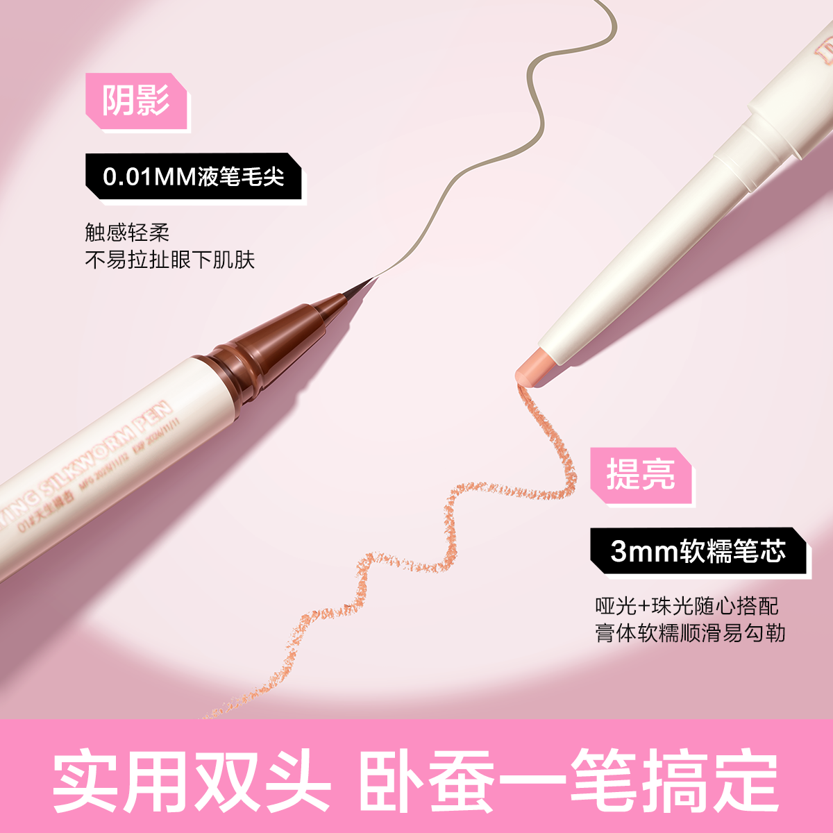 商品介绍:卧蚕笔眼线提亮二合一双头极细液笔