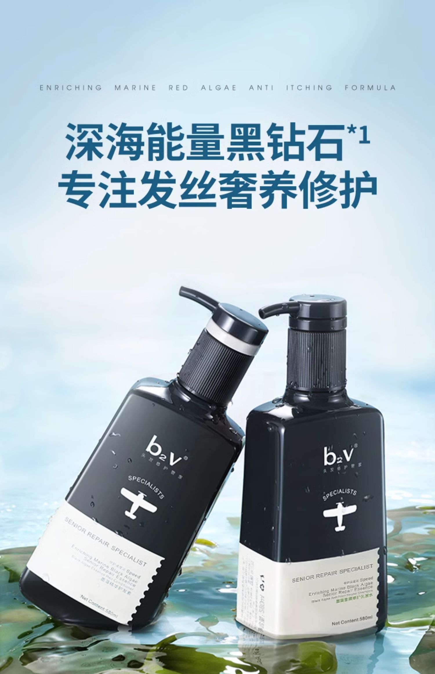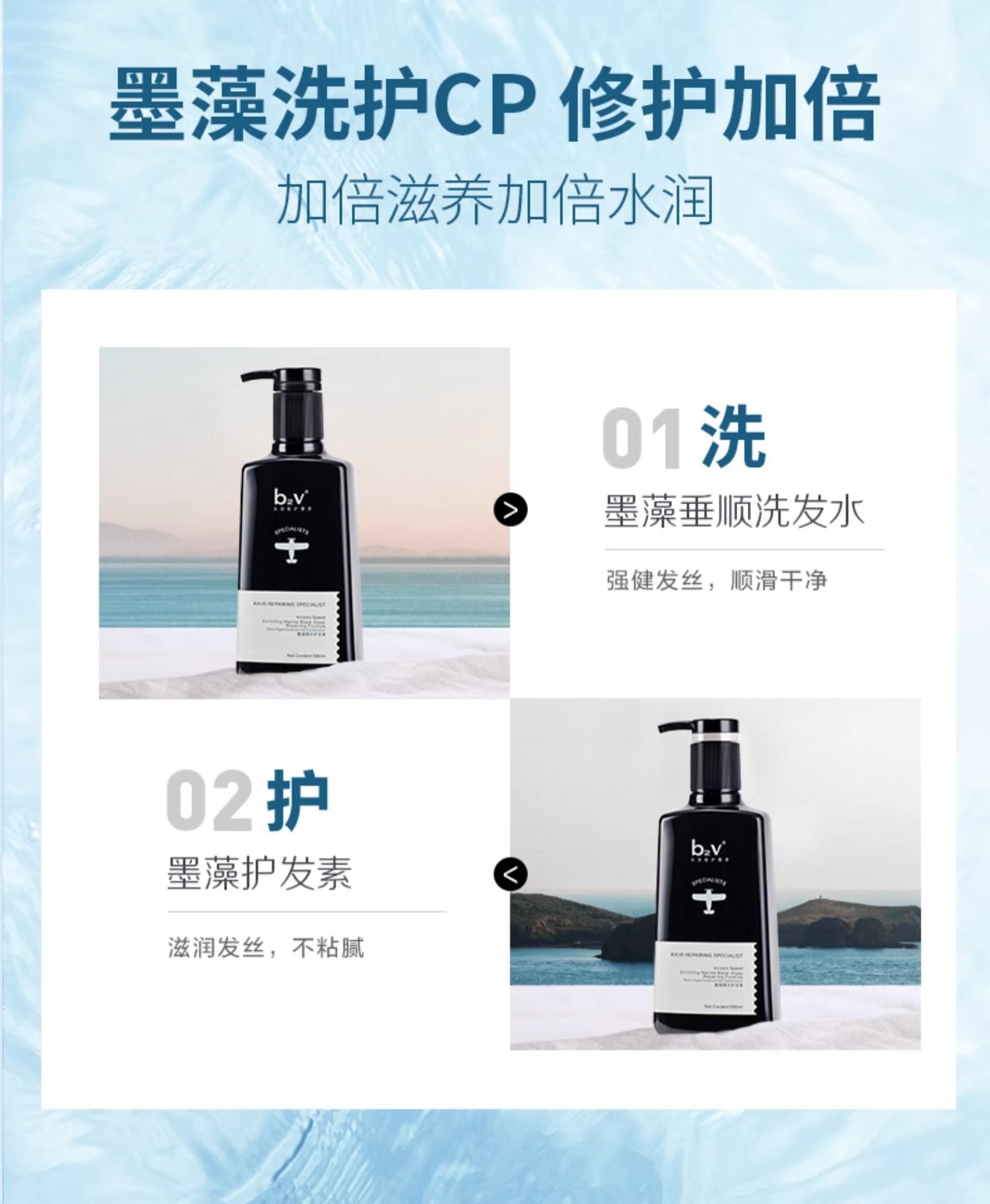 商品名称:b2v墨藻洗发水露护发素套装男止痒控油蓬松丝滑修护毛躁女洗头膏