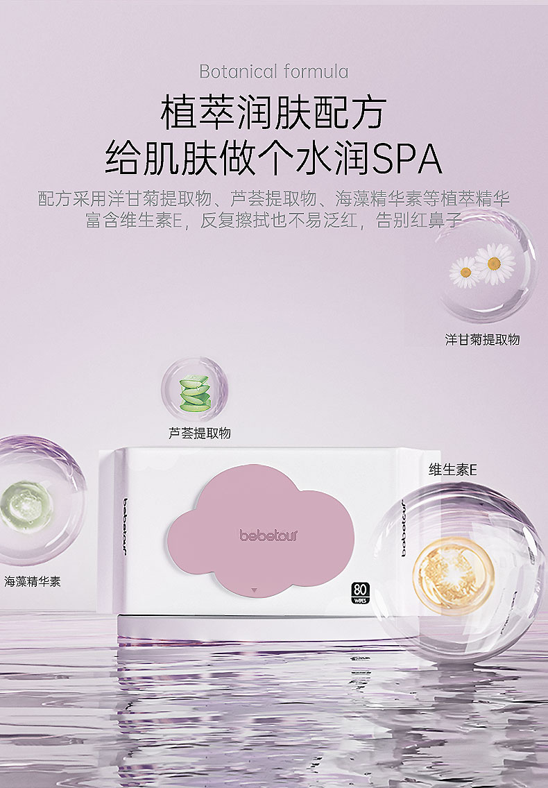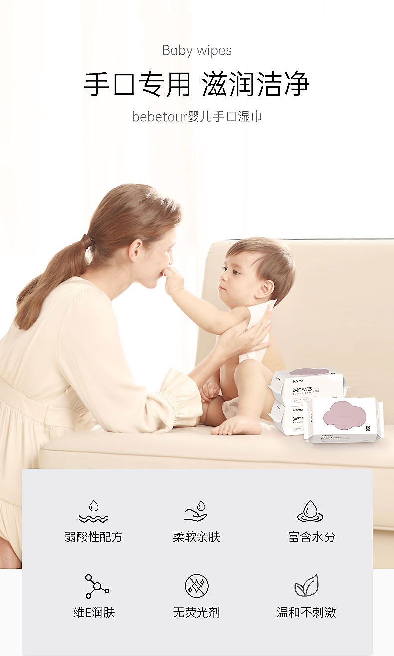商品介绍:bebetour婴儿湿巾云朵湿纸巾80抽*10包