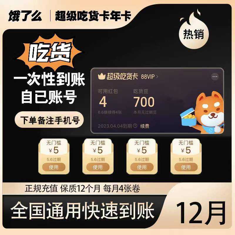 商品简介:外卖人冲,9.9亓得240元全国通用券,无门槛,,折0.8亓/月!!饿了么会员年卡12个月48张5元卷,每月到4张5亓无门槛,即9.9亓买240亓无门槛!