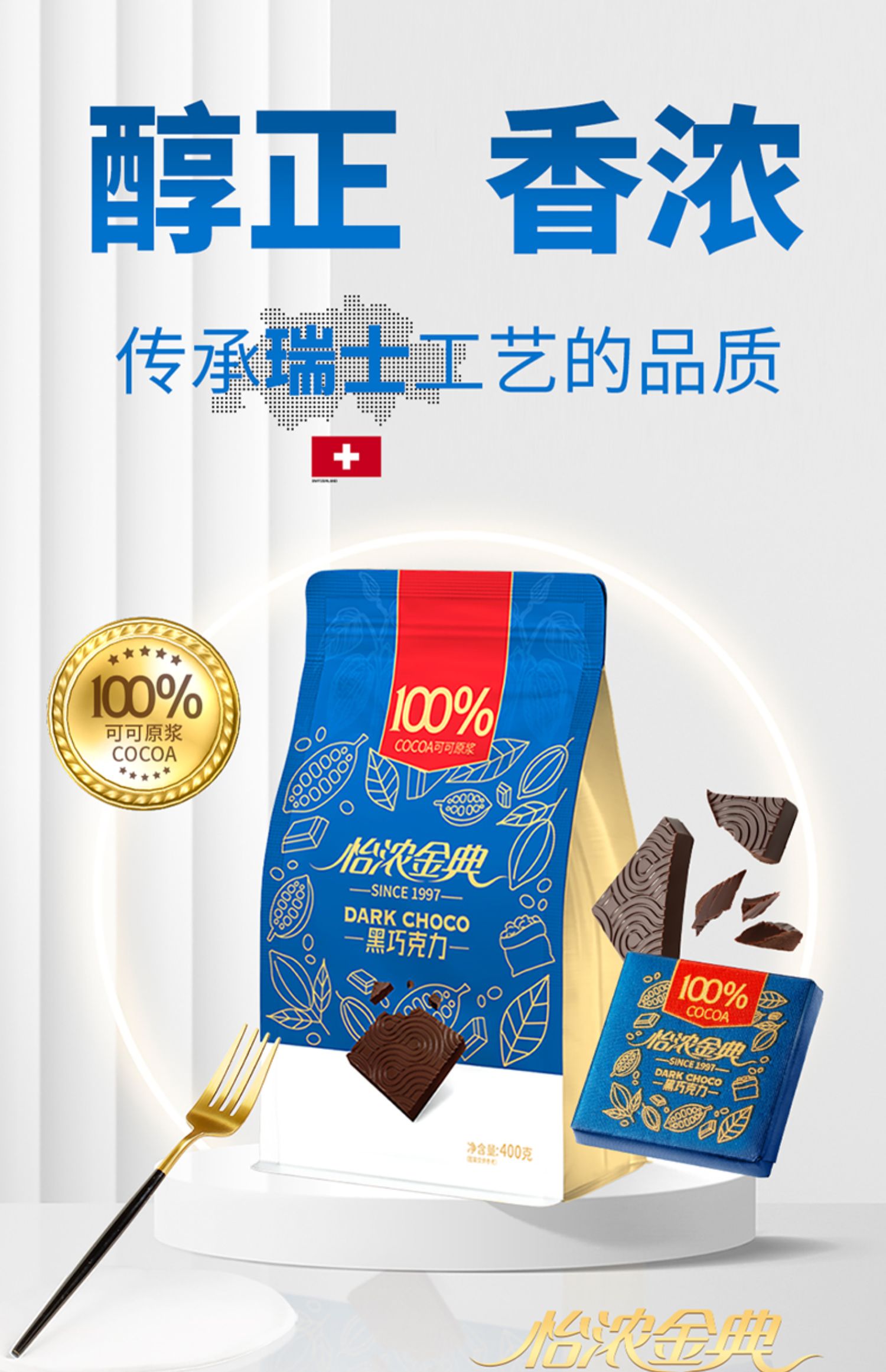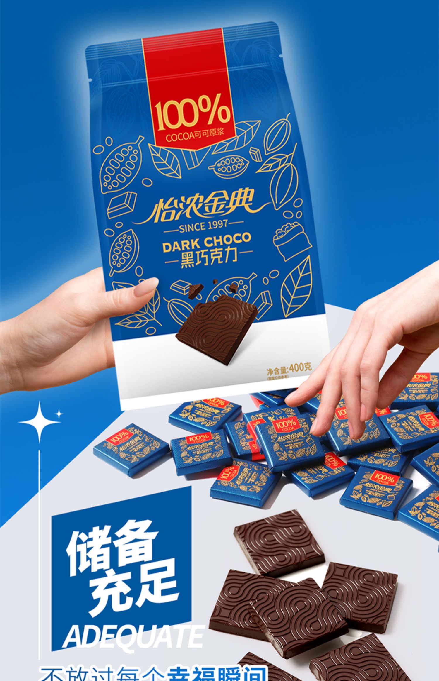 商品介绍:怡浓金典黑巧克力纯可可脂礼盒400g