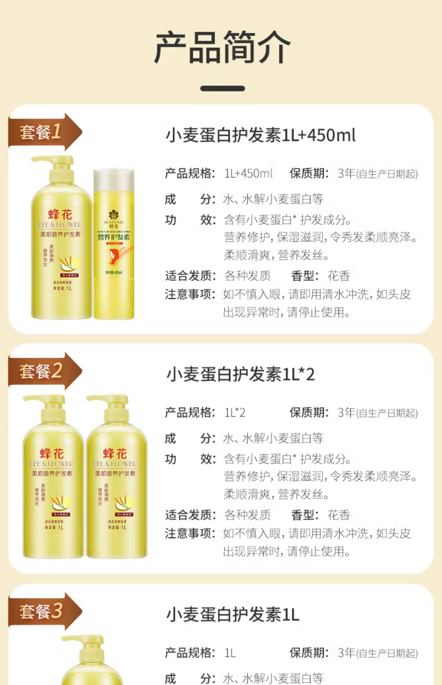 商品名称:蜂花护发素套装滋润营养小麦蛋白护发柔顺顺滑修护改善干枯毛躁
