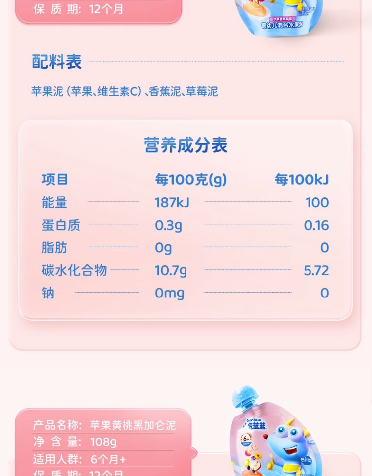 商品介绍:小鹿蓝蓝婴儿果泥谷物泥西梅水果泥