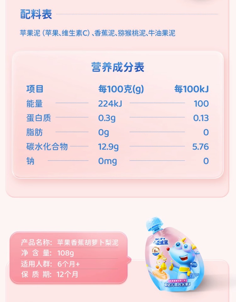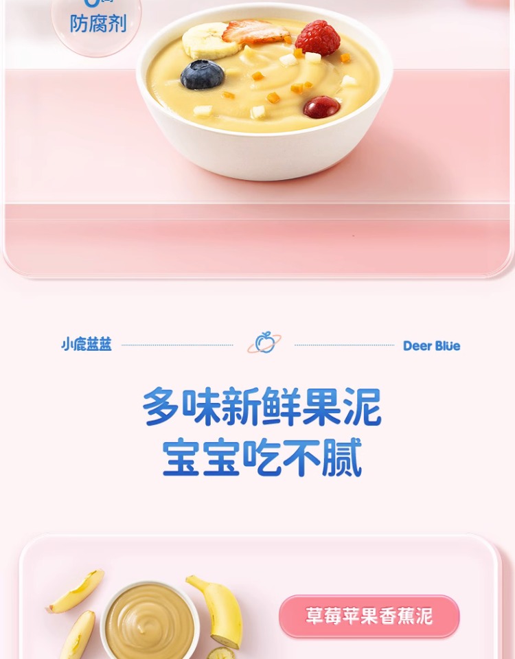 商品简介:小鹿蓝蓝,婴儿果泥谷物泥西梅水果泥婴幼儿无添加盐糖6月+宝宝辅食