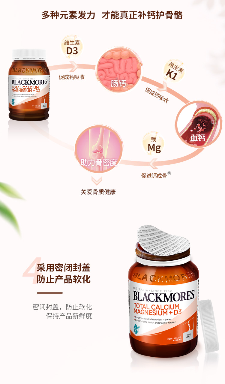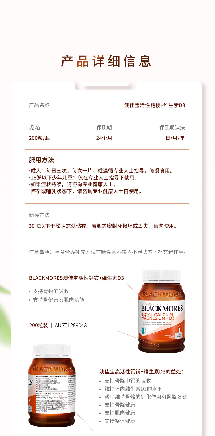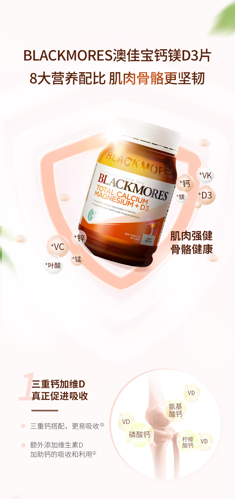 商品名称:【自营】BLACKMORES澳佳宝活性钙镁复合维生素D3补钙片 中老年