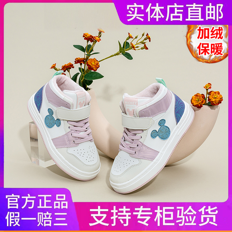 商品名称:迪士尼Disney正版童鞋男女童2024冬季新款儿童高帮运动鞋加绒板鞋
