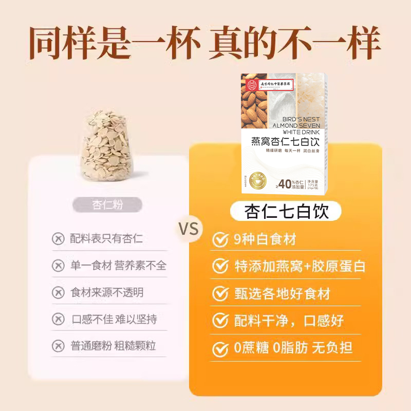 商品名称:祜全斋燕窝胶原蛋白杏仁七白饮杏仁粉营养早餐冲饮养生-T1