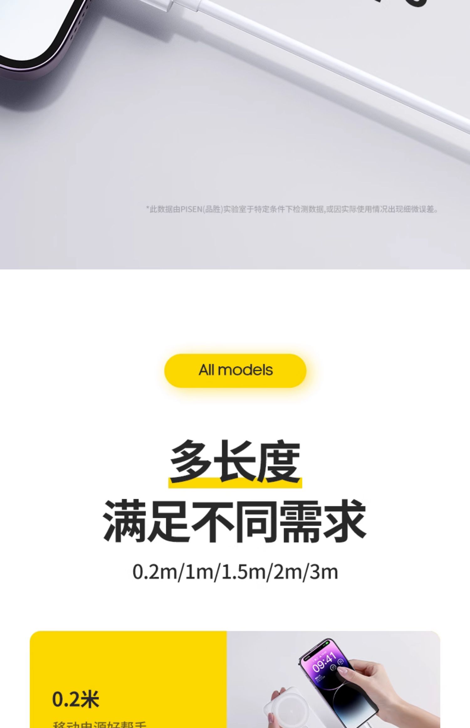 商品名称:品胜适用iPhone16数据线15苹果14充电线器13proMax手机45wPD快充12加长快速11车载iPad平板闪充30W正品8plus