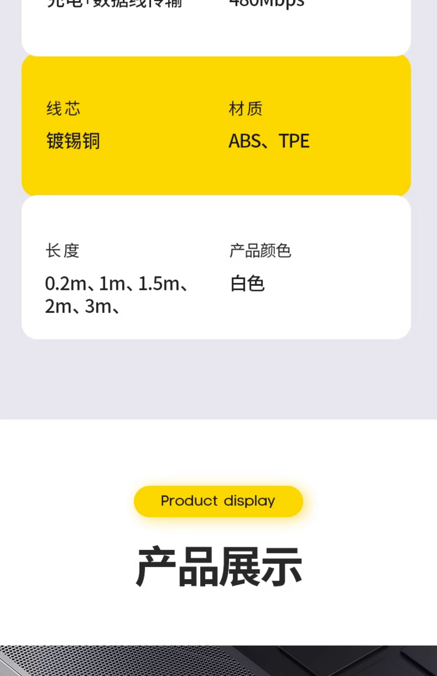 商品简介:大牌品胜,同款超市1条29亓,比杂牌的速度快很多也耐用!标准出厂测试,防止爆线更耐用!强韧线身,抗拉耐扯,抢到就是赚到!