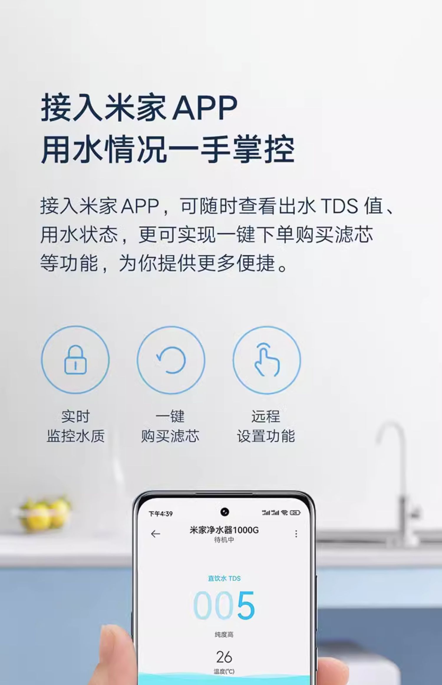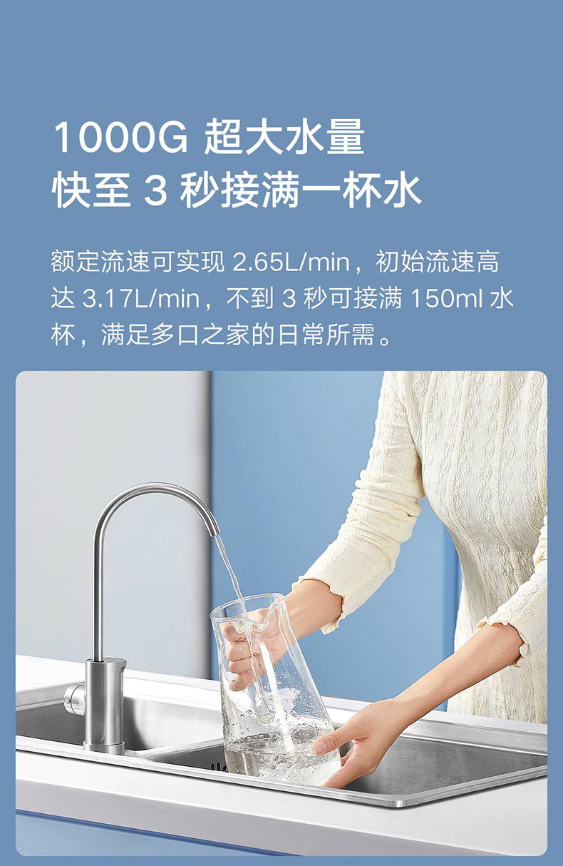 商品简介:【政府补贴20%】小米米家净水器1000G家用直饮RO反渗透过滤净水机,旗舰新品丨3.2L/min大流速丨5年RO长效滤芯,六级精滤新鲜无陈水,即热直饮.,