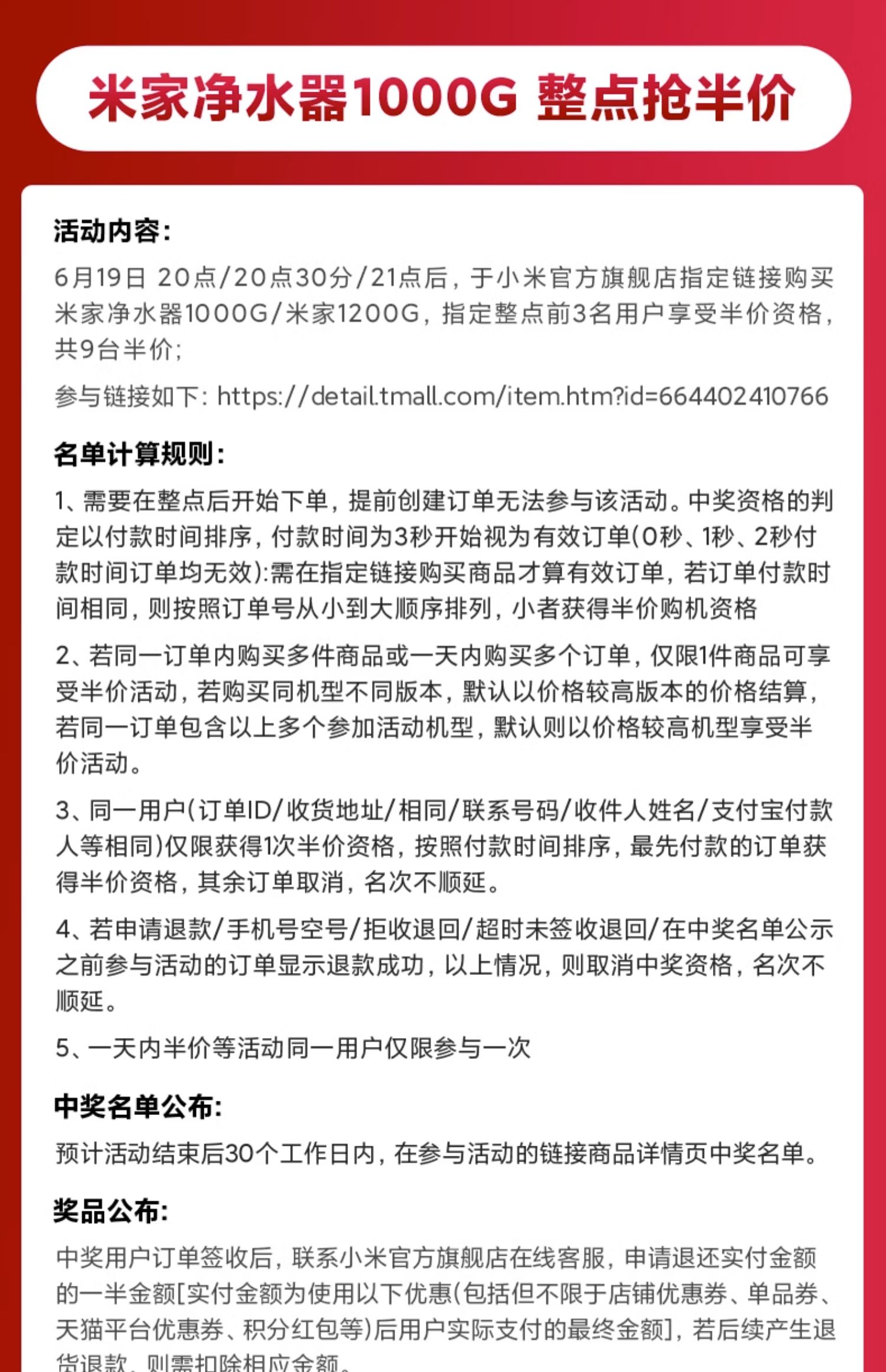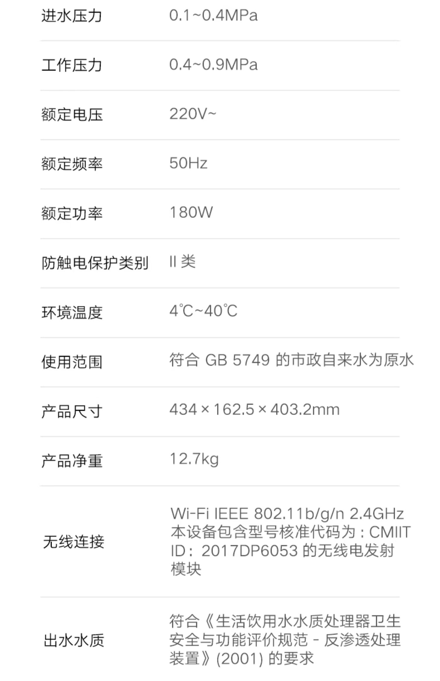 商品名称:【政府补贴20%】小米米家过滤净水器1000G Pro家用直饮厨房自来水